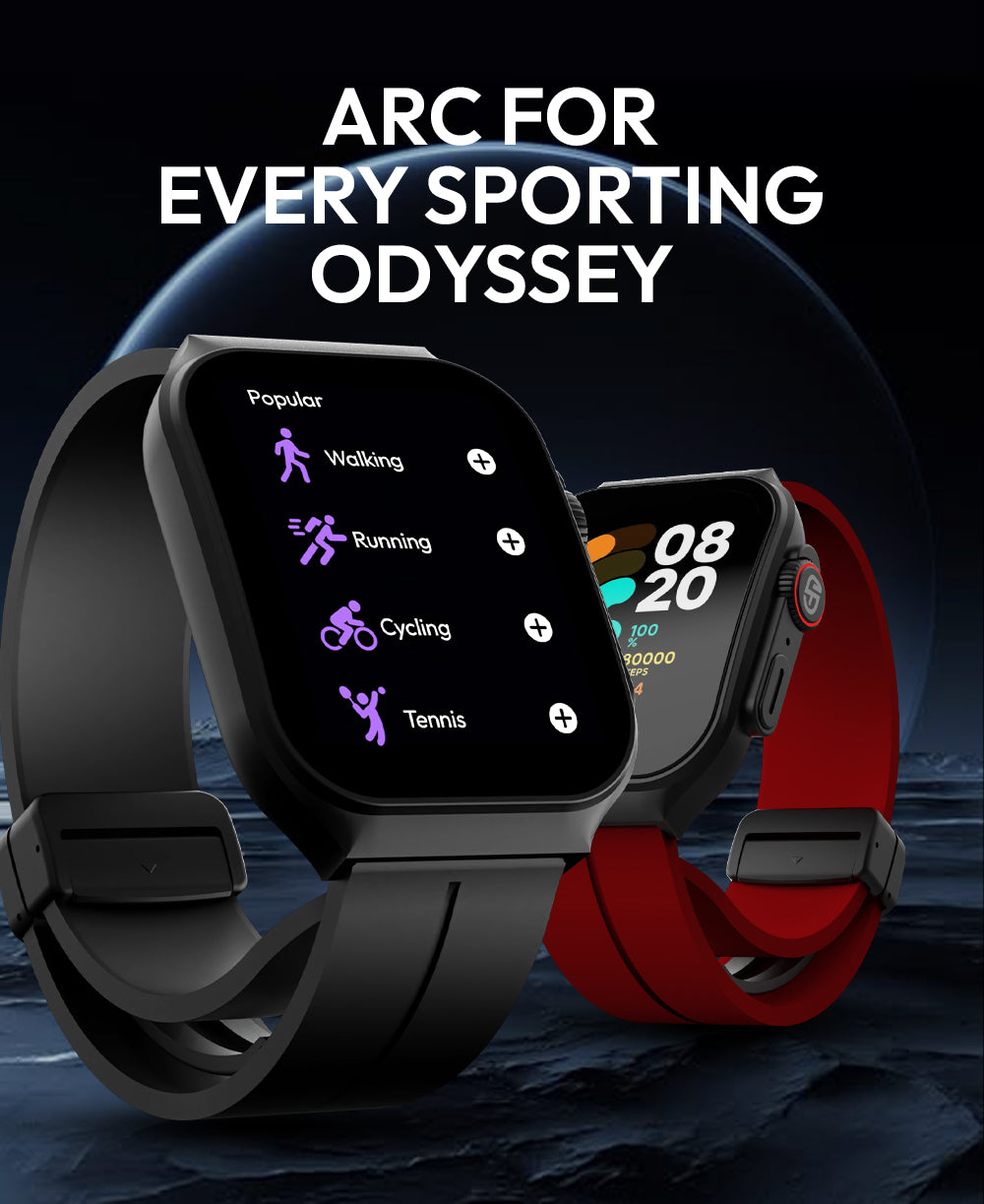 The most innovative Smartwatch is here. The New Arc X boasts a stunning 2.1" HD Super Amoled 3D Curved Display with a resolution of 410x502 and peak brightness of 700 nits. Arc X supports your active lifestyle with 100+ sports modes and a water-resistant design. Customize your look with 100+ cloud watch faces and make a statement with Arc X.