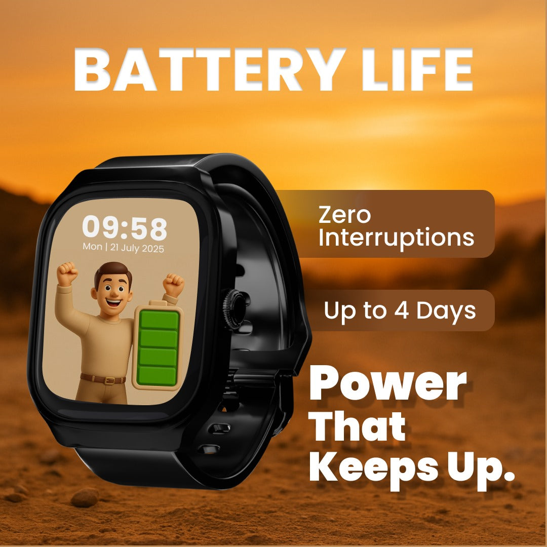 The battery lasts up to 4 days on typical usage. Use the included magnetic charger, and your watch will fully charge in around 2 hours. Snap. Charge. Go!