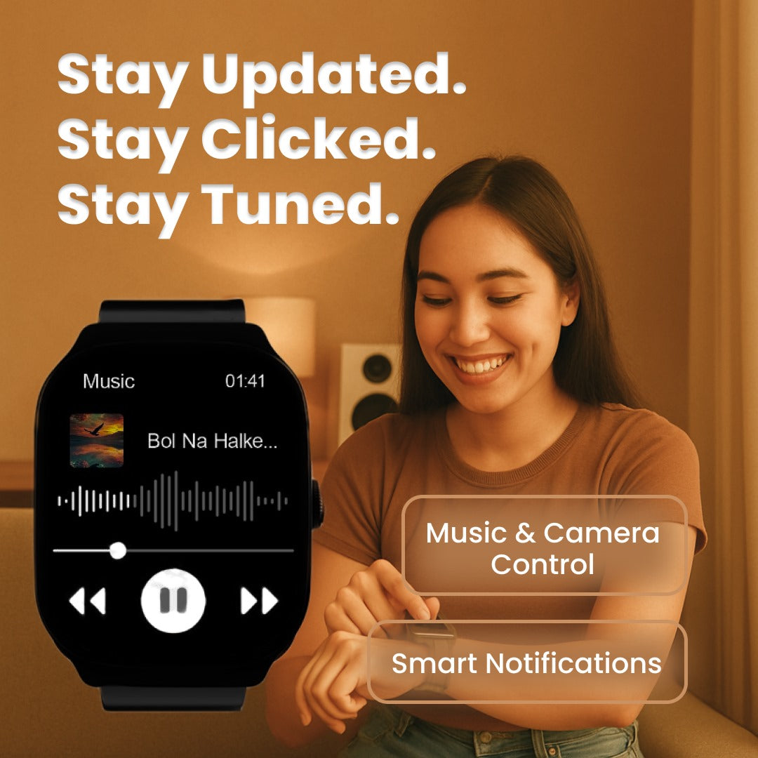 SnapUp Fusion is a next-gen smartwatch designed for everyday brilliance. Its 2.1" HD Lumax Display with 650 nits brightness ensures stunning clarity. Handle calls with ease via Advanced Bluetooth Calling, and personalize your experience with custom watch faces and a rotational crown. Get alerts from X, Insta, Skype & more. Monitor your heart rate, SpO₂, sleep, and female health on the go. IP67-certified, Fusion resists dust and water, while its AI assistant and smart controls make multitasking seamless. Style meets function — always.