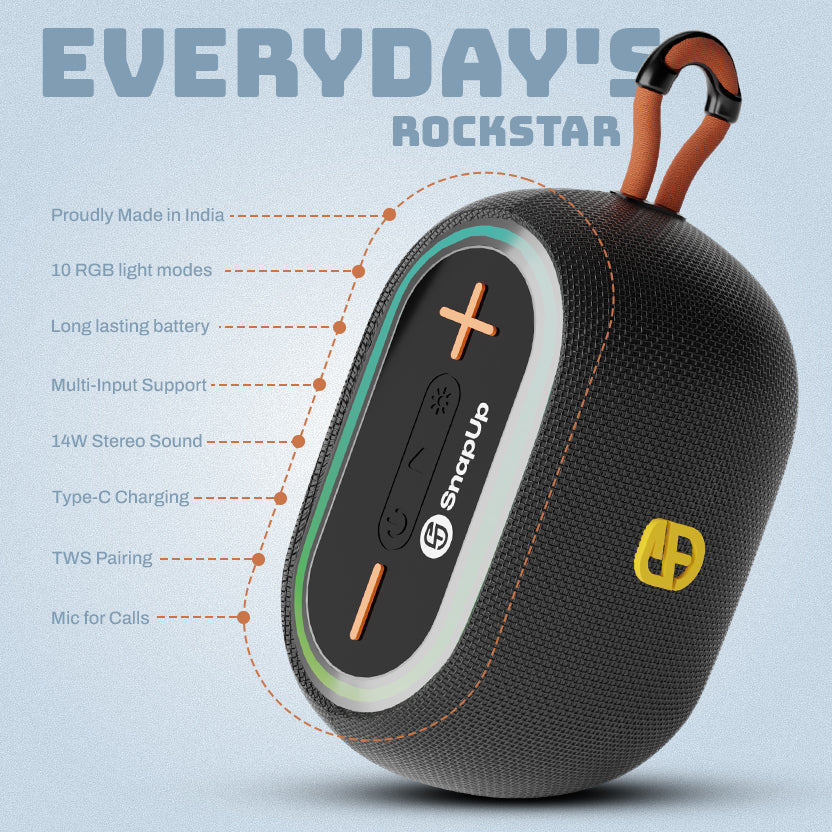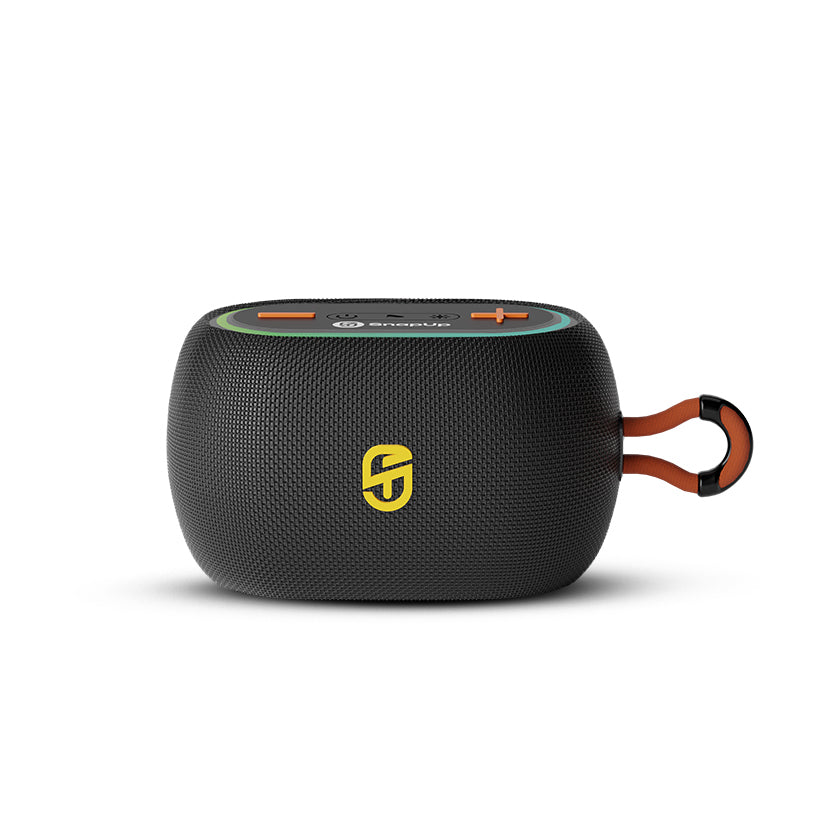 Meet the SnapUp Groove Vibe a compact yet powerful Bluetooth speaker built for your everyday moments. It delivers rich 14W stereo sound through a 57mm driver, backed by Tru HD Bass and acoustic tuning for extra clarity. Whether you're streaming wirelessly over Bluetooth 5.3 or using USB, AUX, TF card, or FM, Groove Vibe keeps you connected to your playlist, your way.