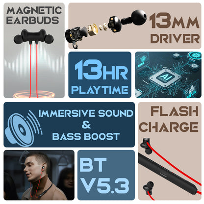 Musique BassX is the perfect blend of bold sound, comfort fit, and portability. With 13mm dynamic drivers, crystal-clear sound, and super bass, it elevates your playlist. The foldable band, magnetic earbuds, and dust resistance ensure real-world durability, while 13 hours of playback keeps you grooving. Flash Charge, dual pairing, and AI support make it more than a neckband, it’s your all-day audio companion.
