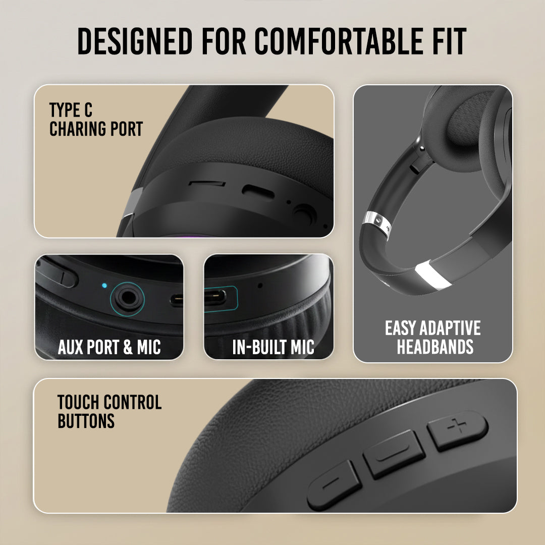 Equipped with 40mm dynamic drivers, the headset delivers HD immersive sound, super bass, and true sound surround, creating a rich audio experience for music and entertainment lovers. With up to 13 hours of playback* and a quick 2-hour charging time, it keeps up with your daily routine without interruption.