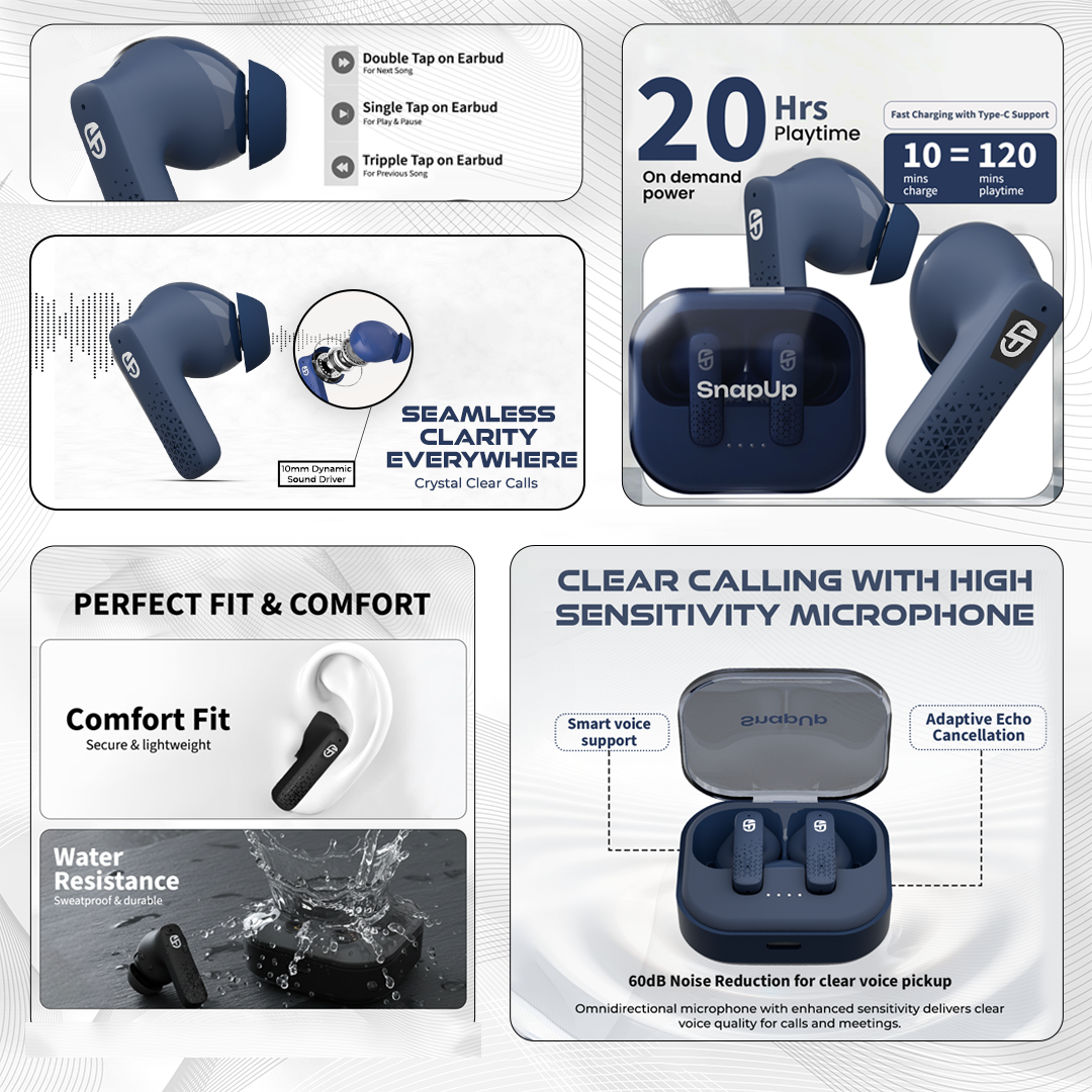 Enhance your listening experience with Crystal Clear, Smooth Call with Ultra Advance Bluetooth v6 Technology. Snap Sync in seconds.
