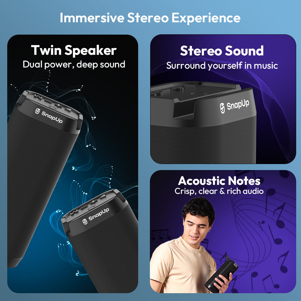 Your perfect audio companion featuring Twin Speaker Impact! With double the speakers, double the thrill, enjoy powerful, room-filling sound that makes every beat, every note, and every moment unforgettable!