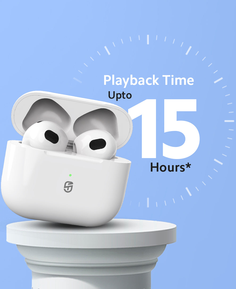 Snapods C300's Type-C charging ensures a smooth, universal charging experience, so you can power up with ease, no matter where you are. Charge your Snapods in just 2 hours and enjoy worry-free entertainment for up to 15 hours.