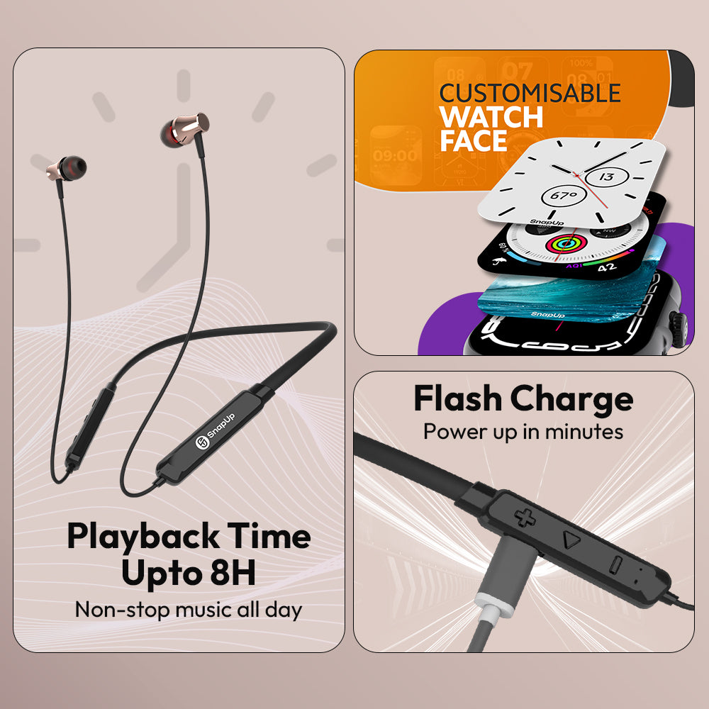 Musique B313: Bluetooth 5.0 paired with SnapSync for a seamless connection, Playtime of up to 8 hours, Ipx4 Water and Sweat Resistance, Voice Assistance Support, Ergonomic design, flexibel band, and Superior Sound with a Dynamic 10mm Sound Driver.