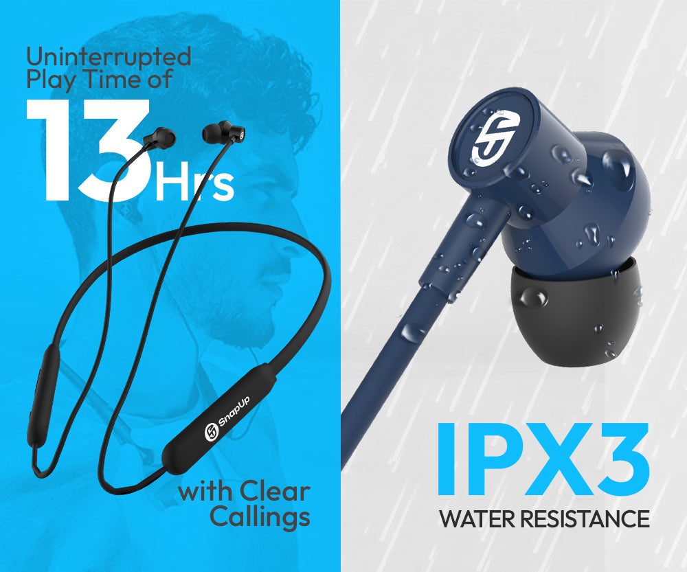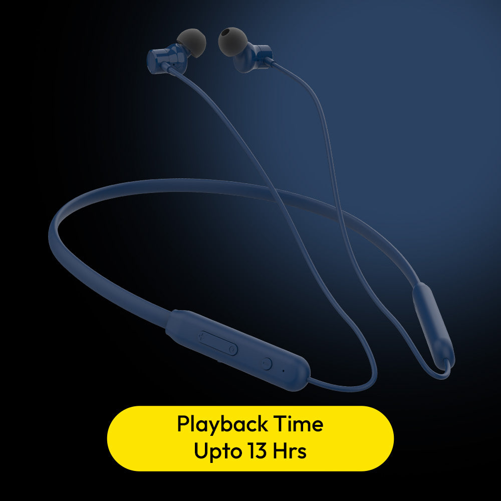 Bluetooth 5.0 paired with SnapSync for a seamless connection, Playtime of up to 13 hours, Standby Time of up to 300 hours, Ipx4 Water and Sweat Resistance, Voice Assistance Support, Ergonomic design, flexible band, and Superior Sound with a Dynamic 10mm Sound Driver.