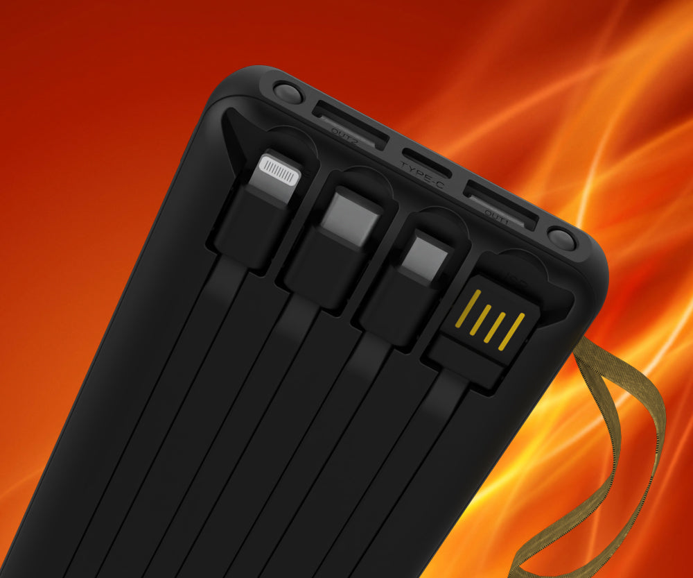 Connections : 4 Connecting chargers: MicroCharger, Type C, Lightening, USB Cable Input