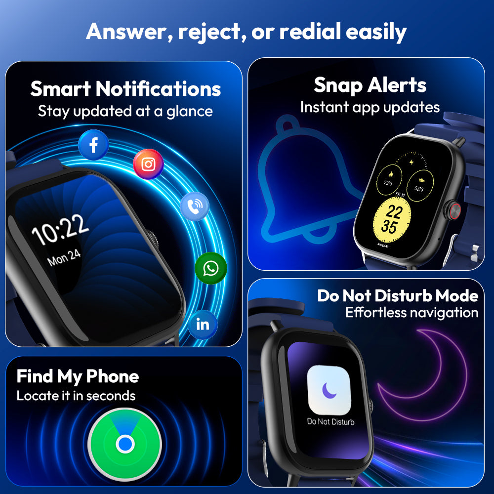 Stay effortlessly connected with Bluetooth calling, smart notifications, and AI assistant support, ensuring you never miss a beat. Elevate your fitness journey with heart rate, SpO2, sleep monitoring, and a female health tracker, plus 100+ sports modes to power your workouts.