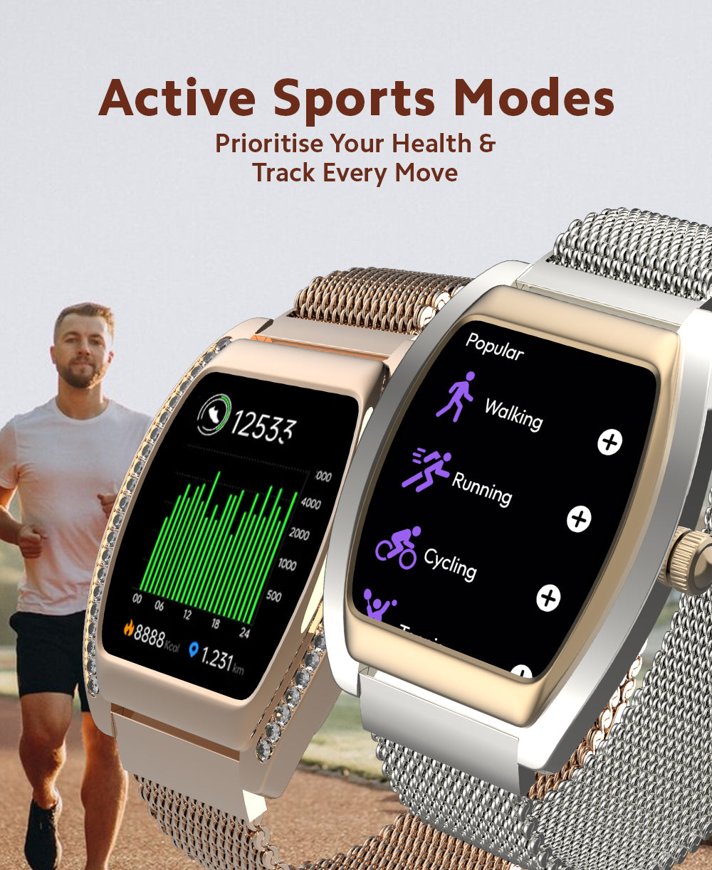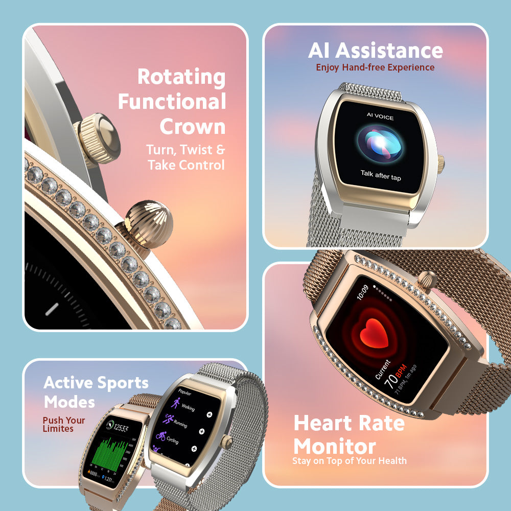Celebrate love in its most luxurious form with this exclusive pair of smartwatches for couples. Crafted with a stunning metal body, each watch is beautifully adorned with diamonds, making it the perfect wedding or anniversary gift.