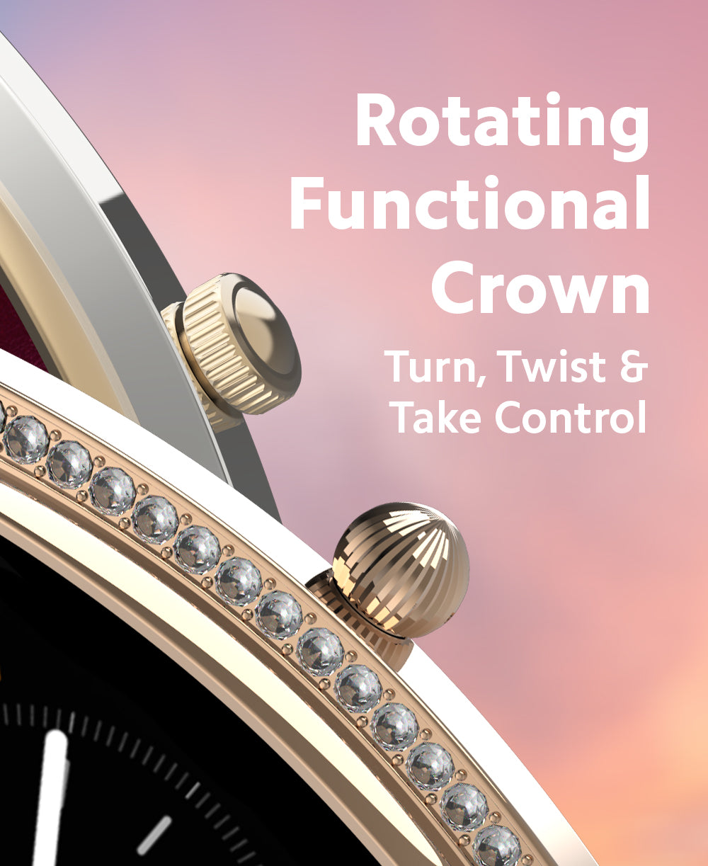 - Elegant rotating crown for easy navigation