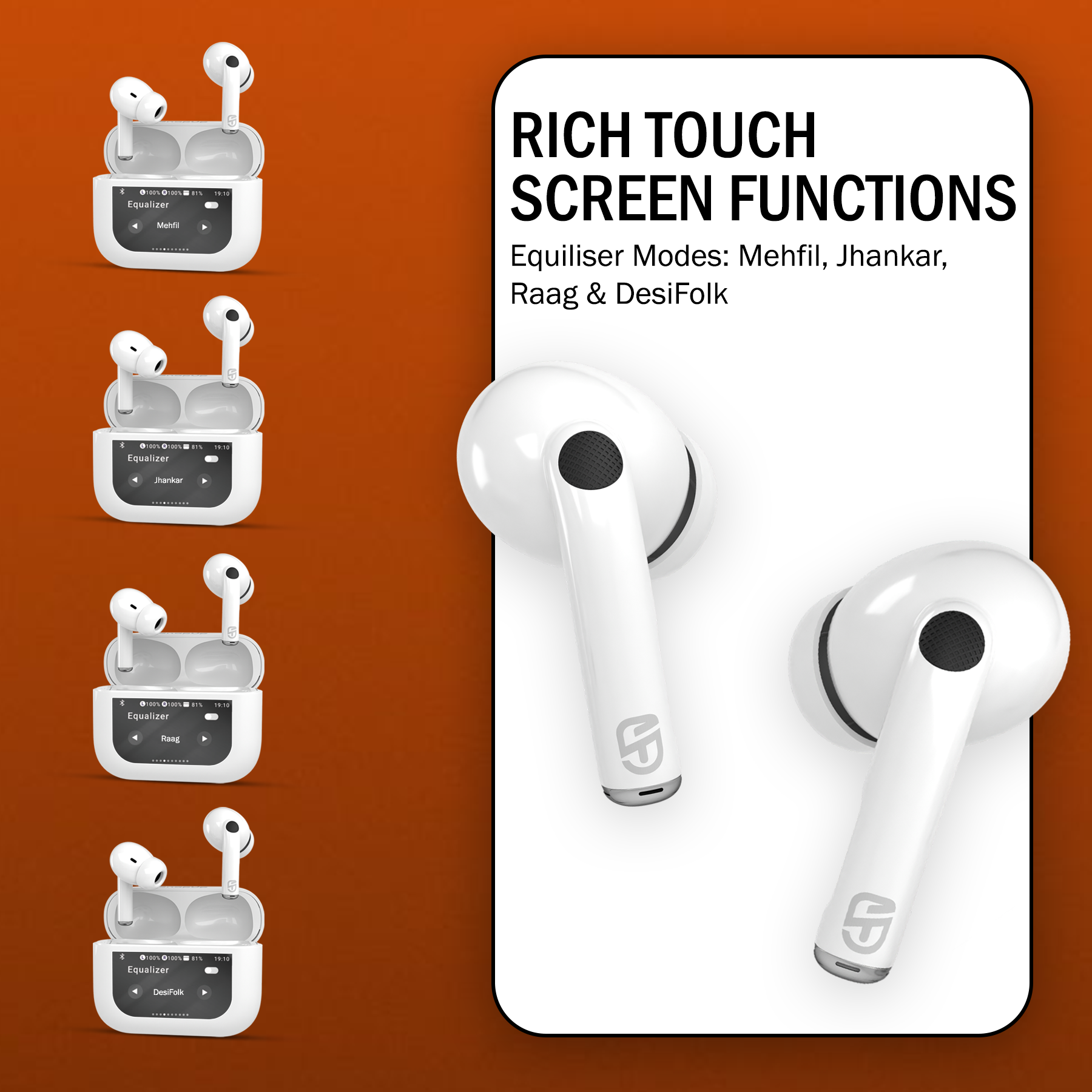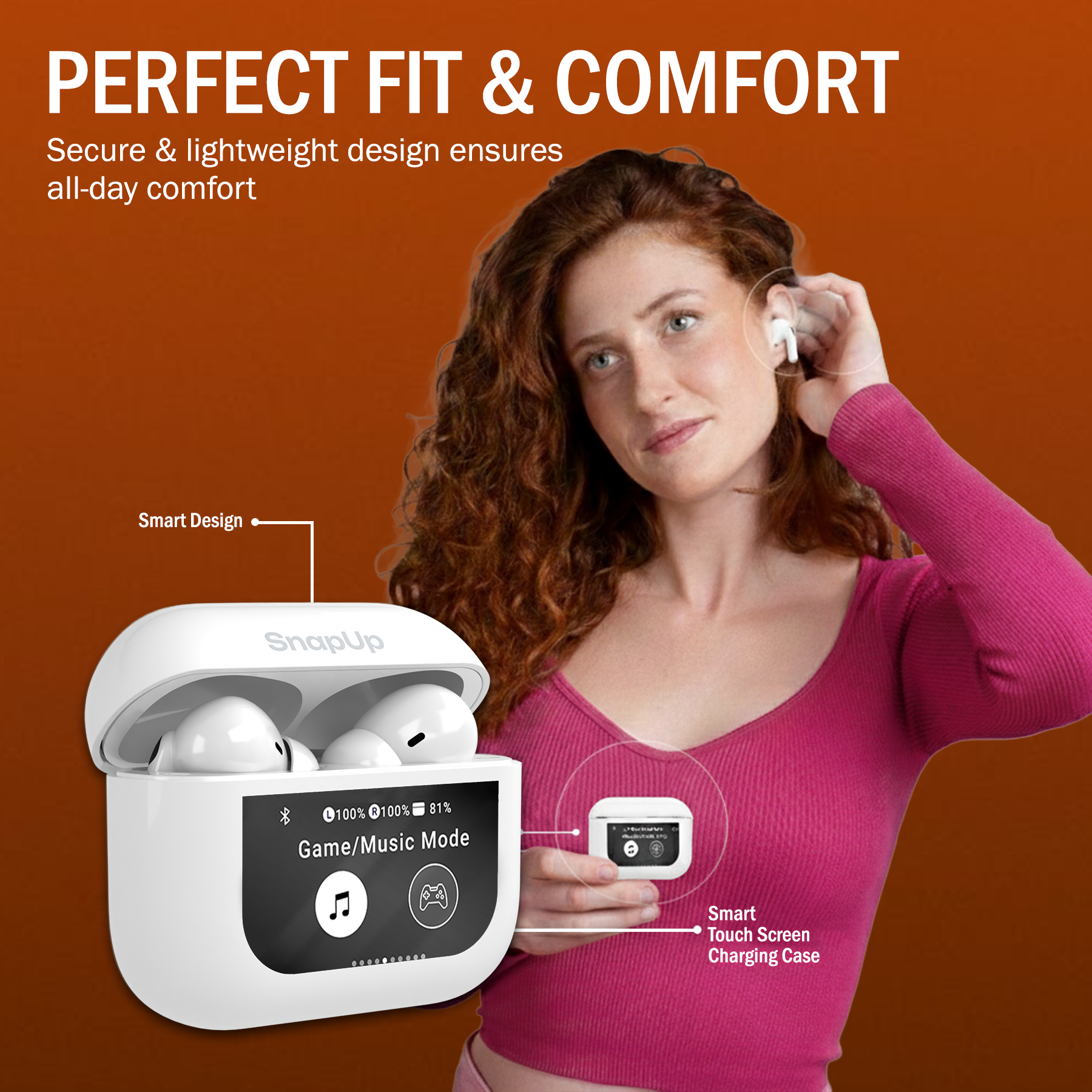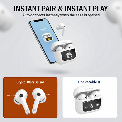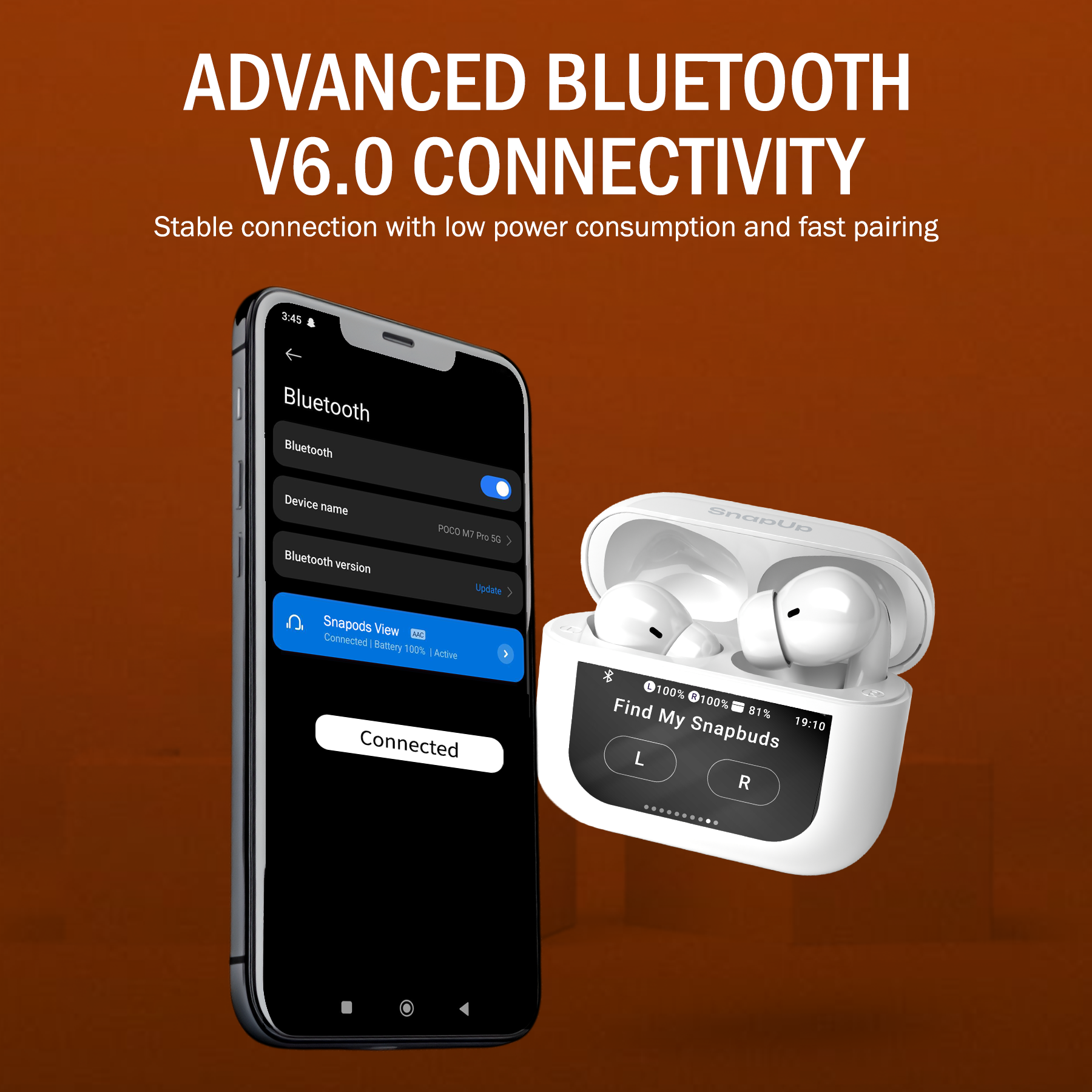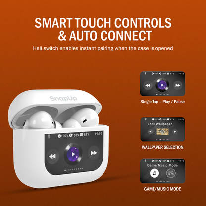 SnapUp Snapods View LCD Touch Earbuds | BT v6, Dual Mic