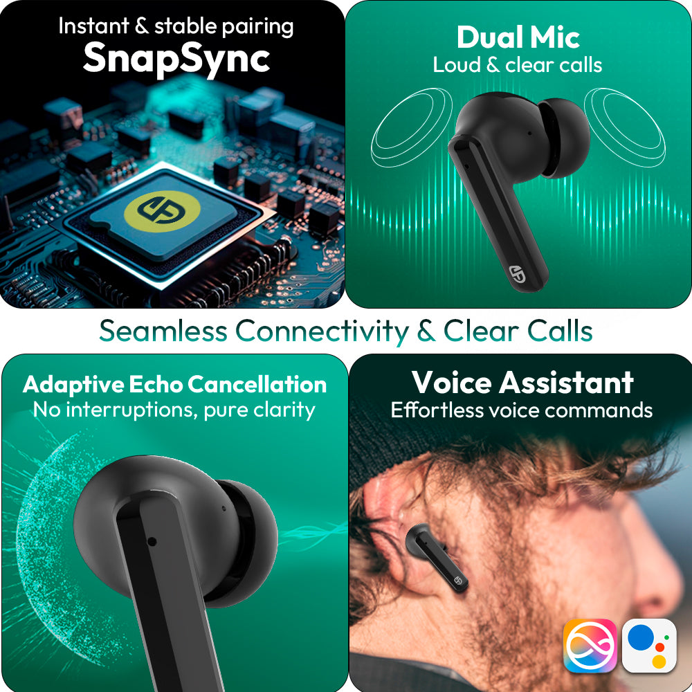 Wherever you go, whatever you do - your perfect audio companion Snapods E320 Neo is always by your side! With seamless connectivity, crystal-clear sound, low-latency gaming, and all-day comfort, these Bluetooth earbuds are your go-to partner for music, calls, enhanced gaming experience and endless adventures.