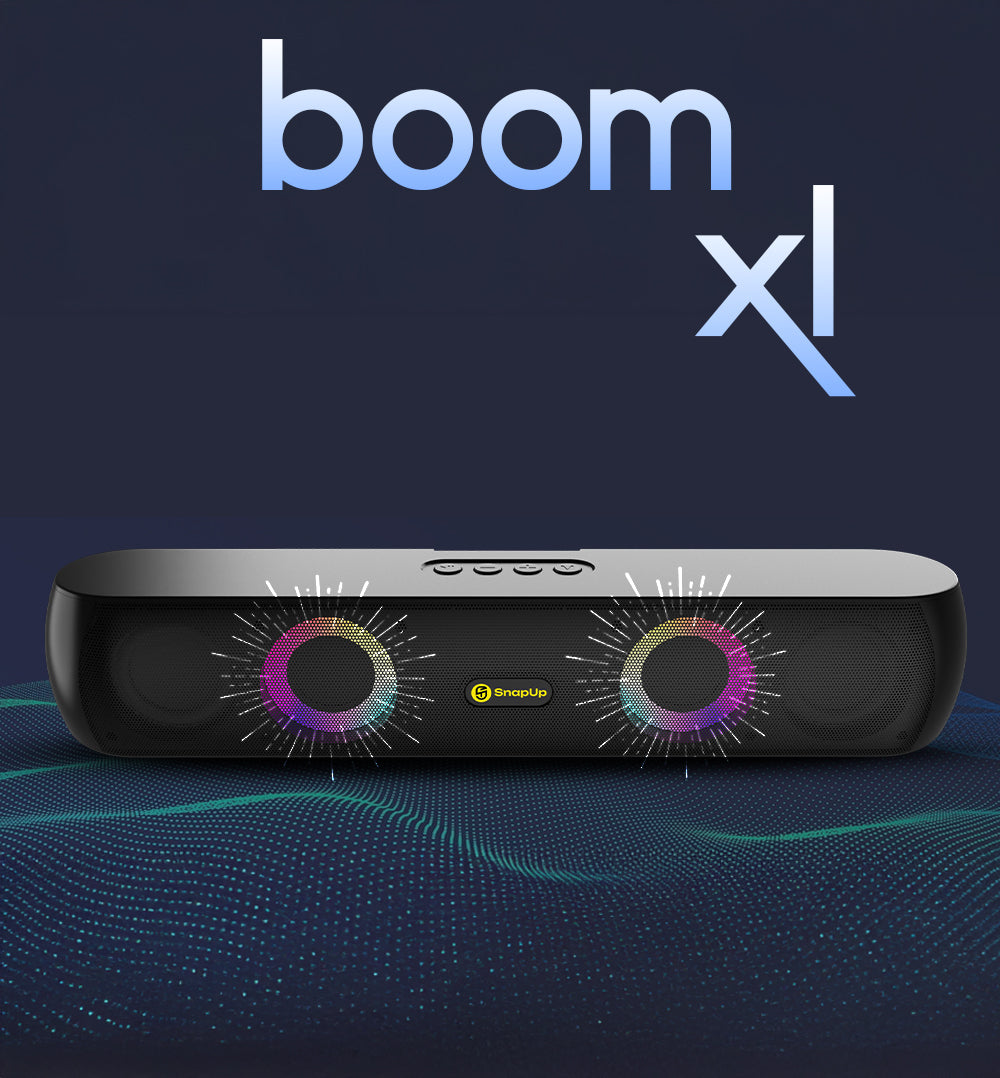 Meet Boom X1, the feather lite soundbar that delivers superior Snap Boom sound in a sleek design. With dual full range drivers and 16W surround sound, it brings clarity, depth and punch into every beat. RGB disco lights sync with your music for a lively vibe, while TWS pairing lets you connect two Boom X1 units for a Double Impact experience.
