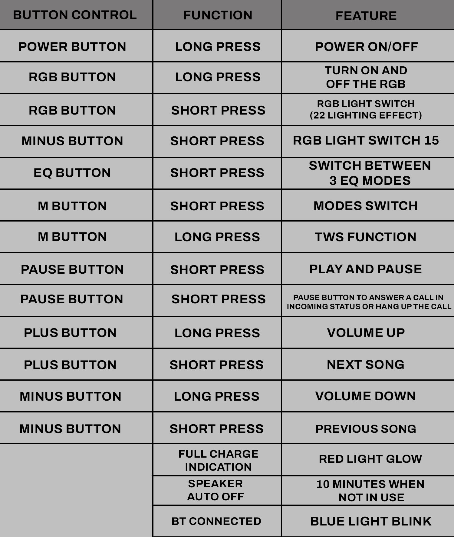 - After 3 alerts, the speaker will automatically power off.