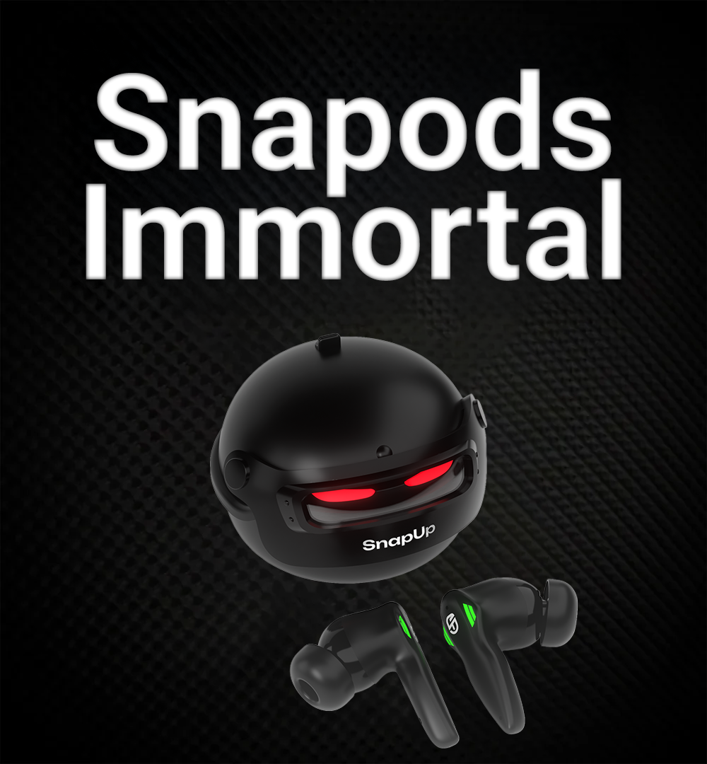 SnapUp Snapods Immortal is engineered for users who demand powerful sound, stable connectivity, and all-day reliability in their true wireless earbuds. Powered by Ultra Advance Bluetooth v6 with Snap Sync, Snapods Immortal ensures fast pairing, low latency, and seamless performance across devices. With up to 20 hours of playback, 120 hours of standby time, and Type-C fast charging that fully powers the earbuds in up to 2 hours, it is built for uninterrupted everyday use. Voice assistant support, smart touch controls, and IPX4 dust resistance add to the convenience, making Snapods Immortal a dependable companion for work, travel, and daily entertainment.