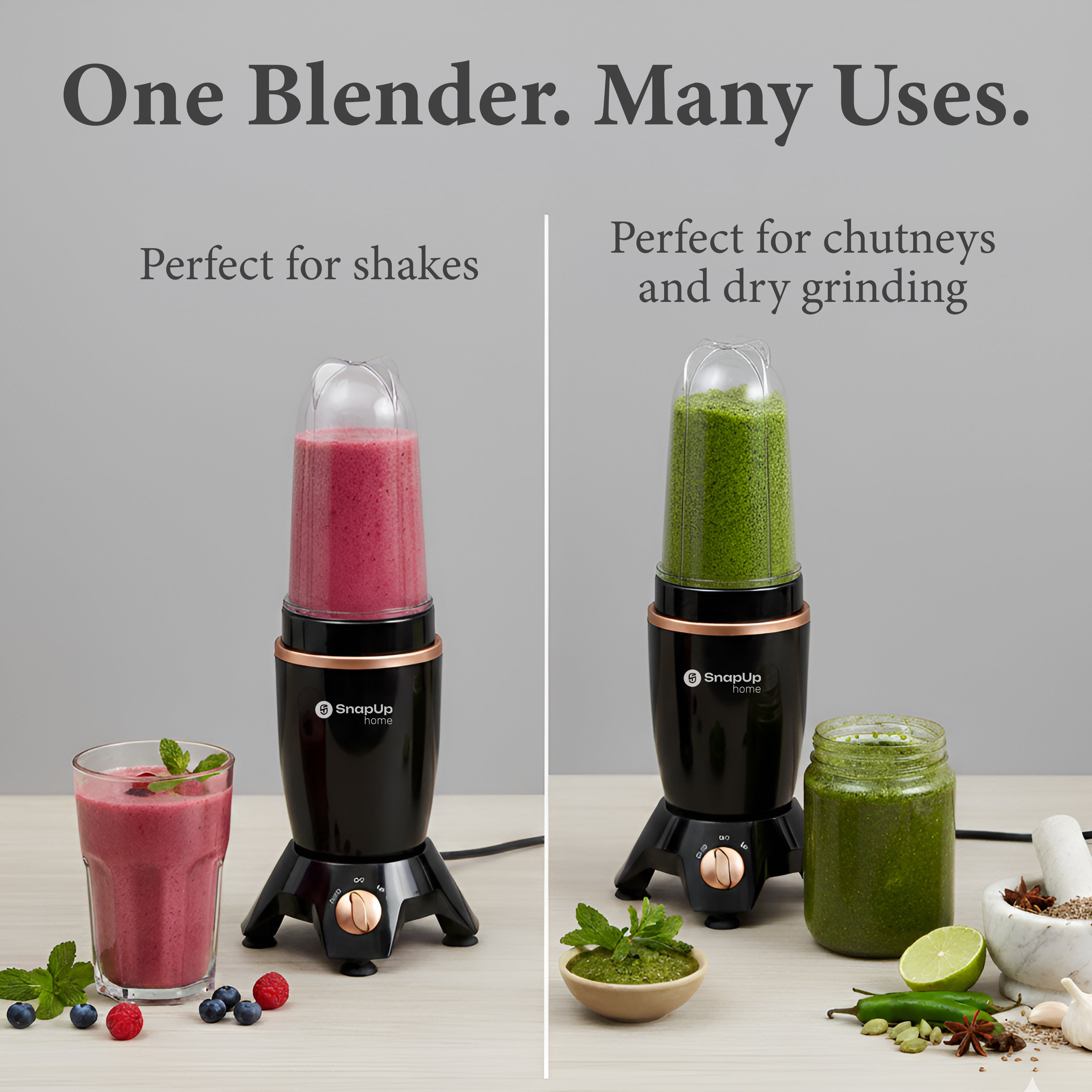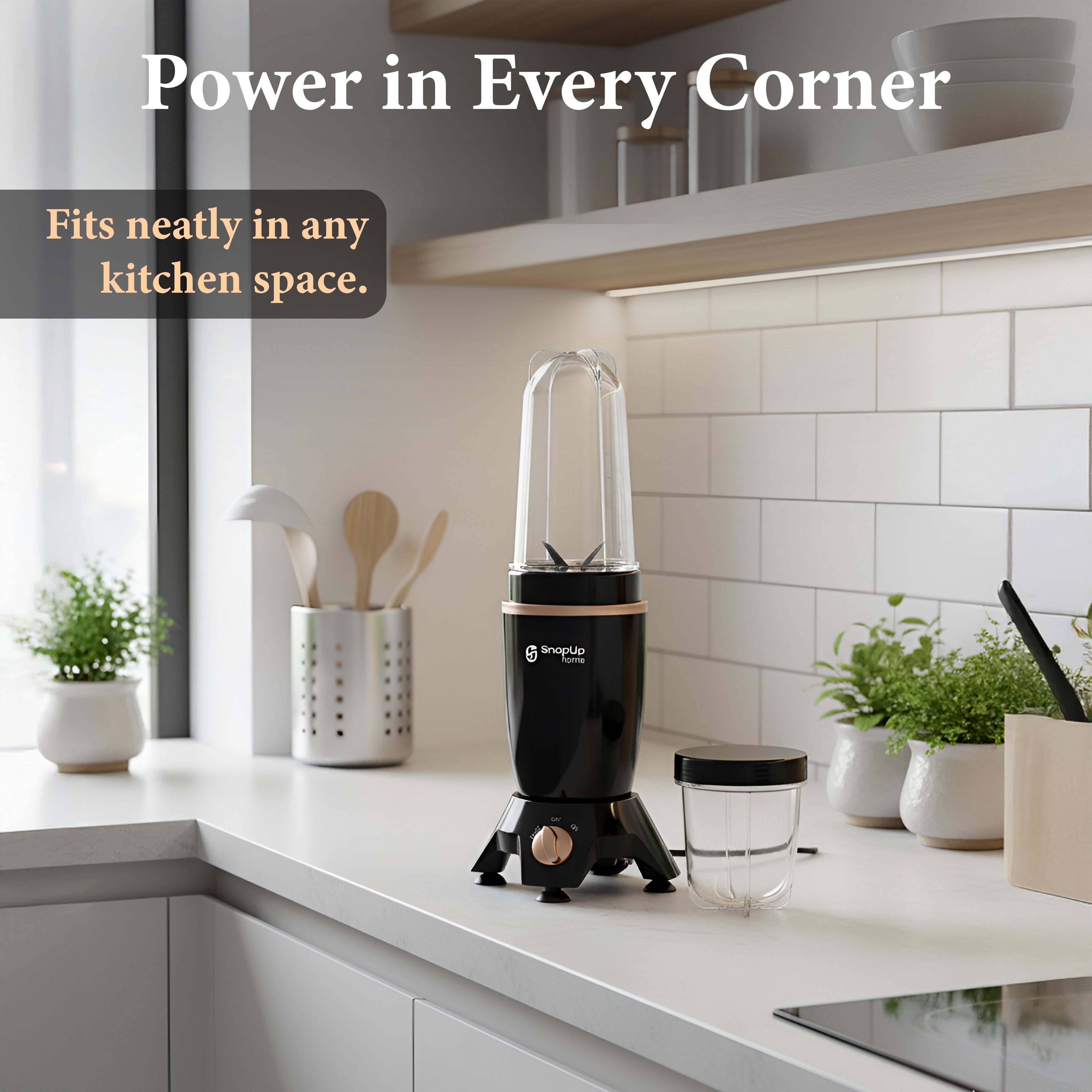 The SnapUp Bolt Nutri Blender 300W is made to bring powerful blending into your everyday kitchen routine. With a 300W motor, sharp stainless steel blades, and strong blending jars, it creates smooth results for shakes, smoothies, chutneys, and more. Compact, easy to use, and simple to clean, it delivers quick performance and fits perfectly into any modern kitchen.