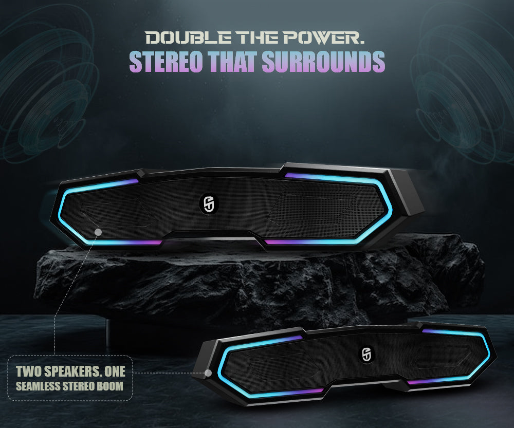 Sleek, bold, and portable. Matte black finish with RGB disco lighting for an edgy vibe.