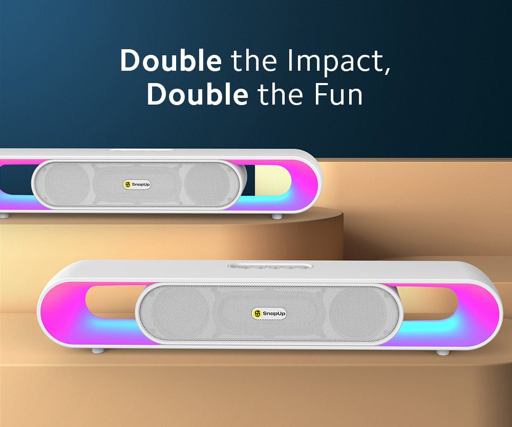 Soundbar with 16W Powerful Boom Surround Sound, Bluetooth v5.3, Dual Full Range Superior Sound Drivers, Playtime Up to 8H, TWS Speaker Double Impact