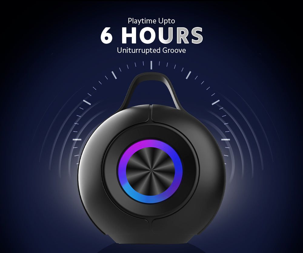 Bluetooth Speaker with 10W RMS Hypnotic Sound Experience, Up to 6 Hours of Playtime, Sweat & Water Resistance, RGB Lights, Acoustic Sound Notes