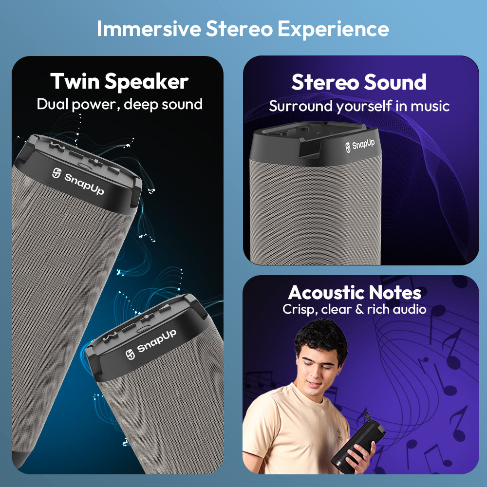 Your perfect audio companion featuring Twin Speaker Impact! With double the speakers, double the thrill, enjoy powerful, room-filling sound that makes every beat, every note, and every moment unforgettable!