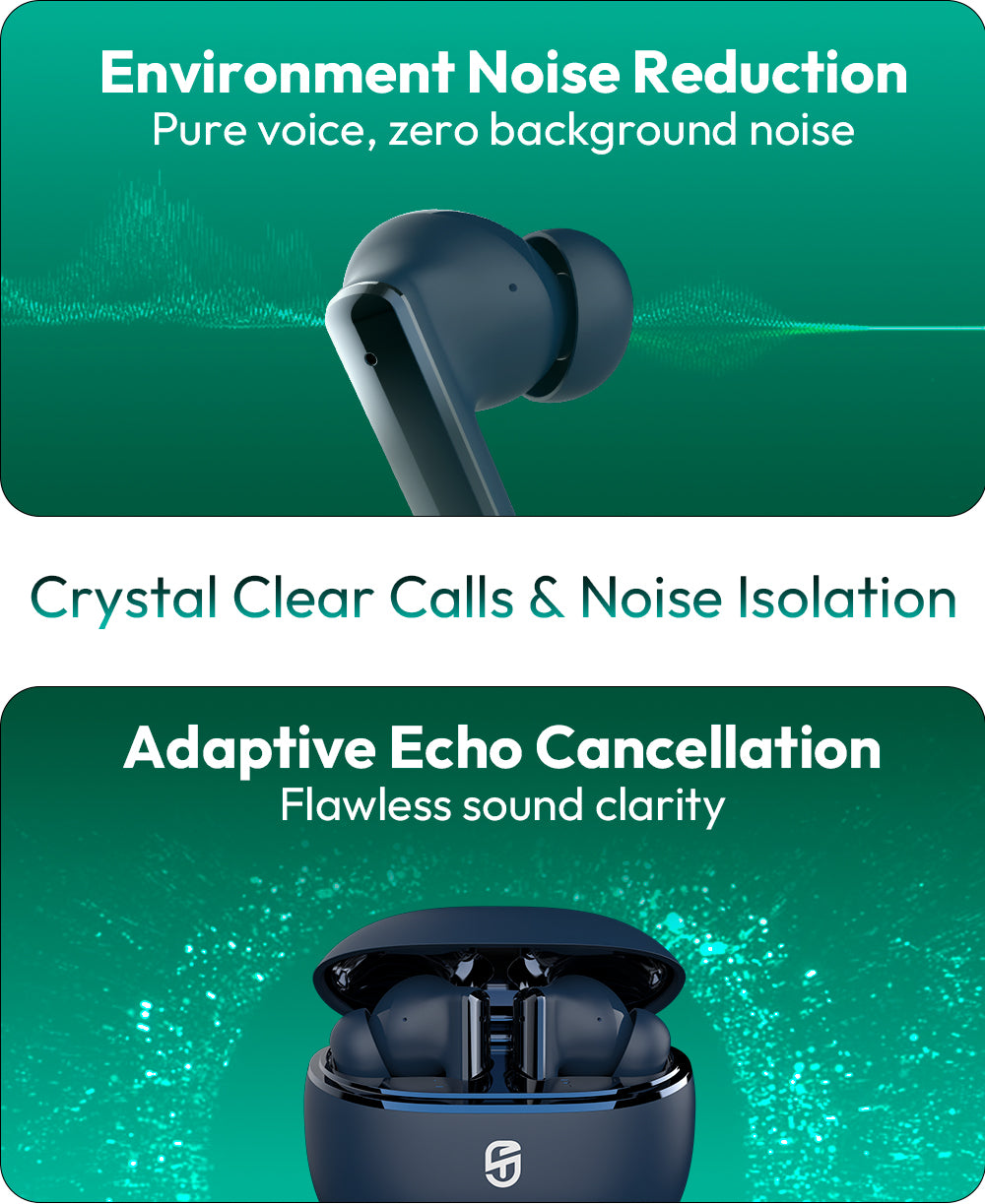 The earbuds come with dual microphones and environment noise reduction, ensuring crystal-clear calls by filtering out background noise for a seamless conversation.