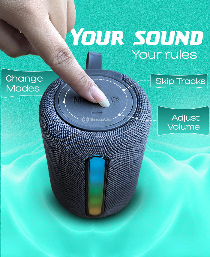 SnapUp Stone S20 is your go-to Bluetooth speaker for everyday beats and effortless portability. Designed for music on the move, it delivers 12W immersive stereo sound powered by a 55mm driver  perfect for personal jams, chill evenings, or outdoor fun. With RGB lights built-in, your sound isn’t just heard, it’s seen. Choose from multiple input options USB, TF card, FM, and Bluetooth 5.3  for total flexibility. Up to 7 hours of playtime on a single charge means your vibe stays uninterrupted. Stone S20 also supports TWS dual