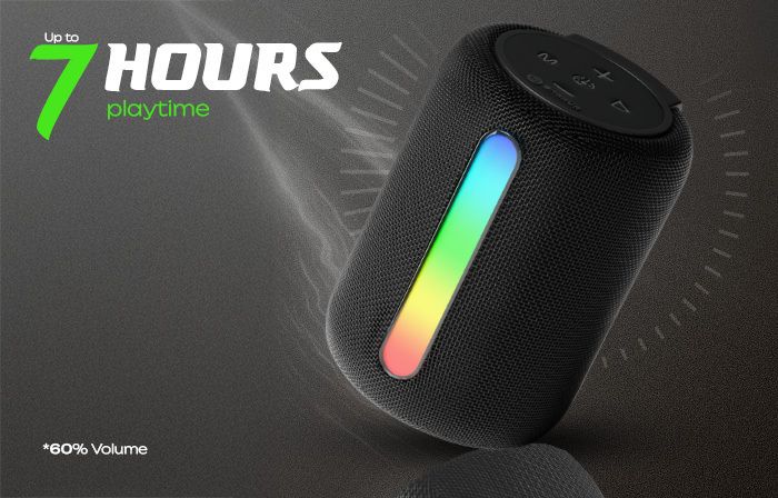 Don’t let the size fool you Stone S20 packs a punch with 12W stereo sound and super bass, all in a sleek, travel-friendly frame. Its RGB lights glow with your mood, while the TWS pairing feature doubles the soundstage for party moments. Stream via Bluetooth 5.3, tune in with FM, or play directly via USB and TF card. Whether it’s a solo vibe or a squad hang, this speaker is