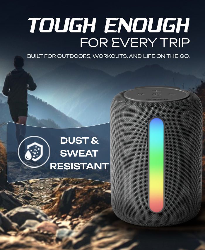 Bring the mood with Stone S20’s vibrant RGB lights that pulse with your music. Whether you’re setting the tone for a late-night chill or daytime flow, the lighting adapts with style. Built with a sleek, compact body and rugged ABS shell, it’s made for movement. Slip it in your bag, carry it to your workspace, or park it on your nightstand this speaker fits anywhere without losing its charm.
